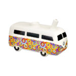 The dry-hitting pipe is made entirely from ceramic and decorated with a flower power or groovy circles design. Measures 7 inches (17.75cm) long.